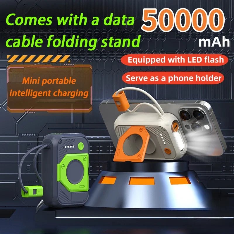 Stay powered up anytime, anywhere with this massive 50,000mAh power bank. With fast charging support and multiple ports, it's perfect for phones, tablets, and more—ideal for travel, emergencies, or heavy daily use.
