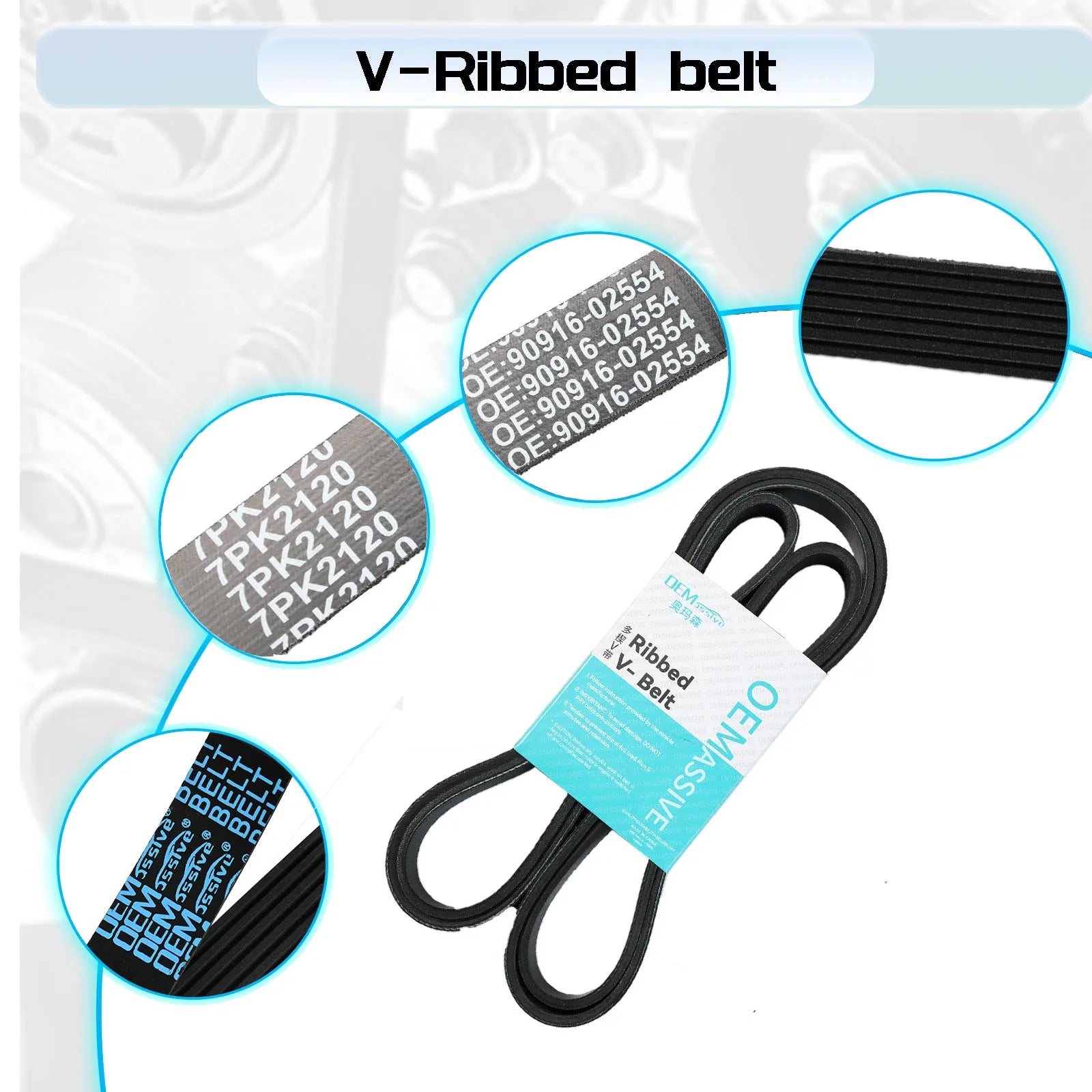 High-quality 7-rib serpentine belt measuring 2120 mm in length. Designed to drive multiple engine accessories (alternator, AC compressor, power steering, etc.) reliably. Built with EPDM materials for durability, heat resistance, and long life.