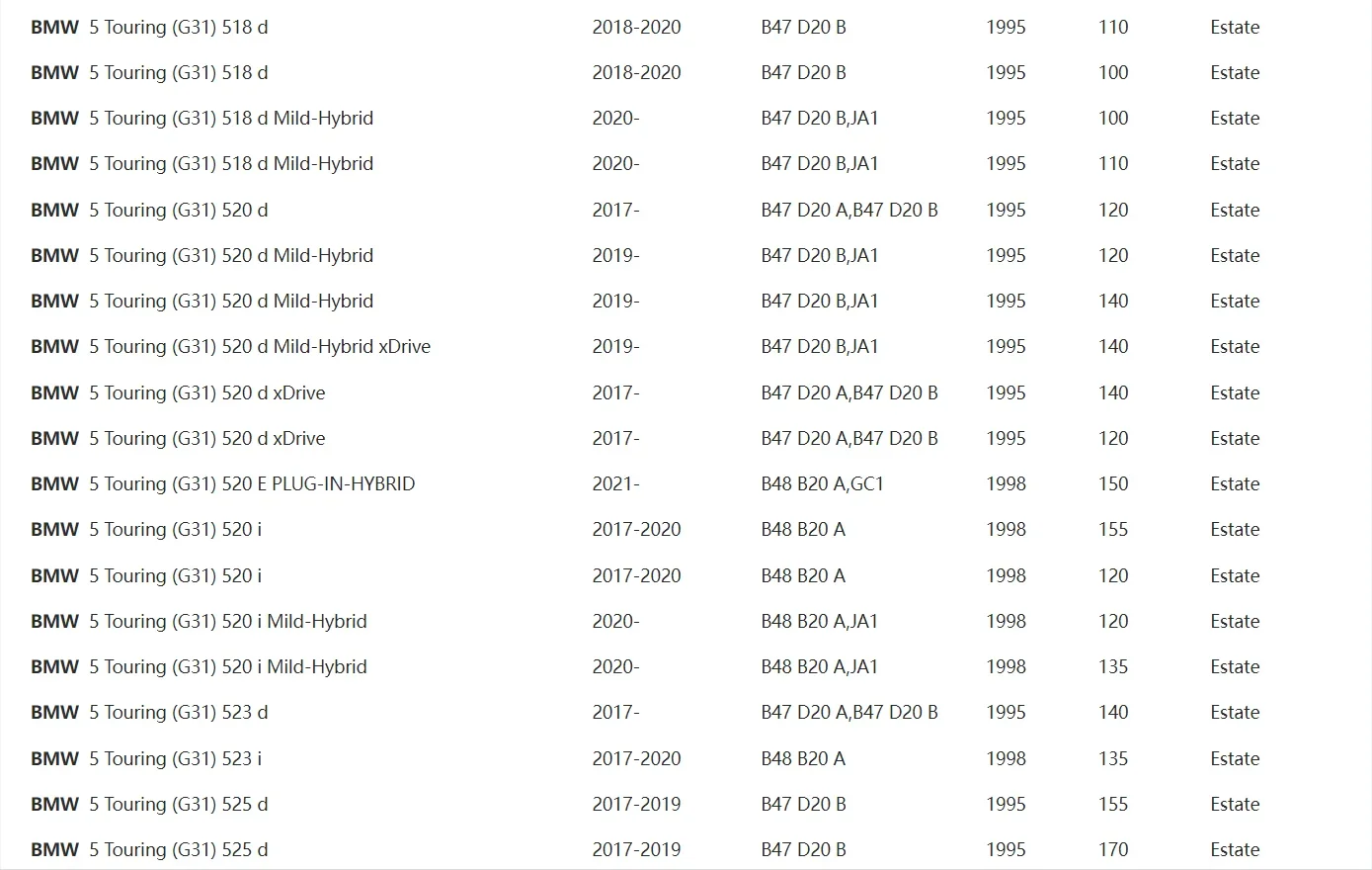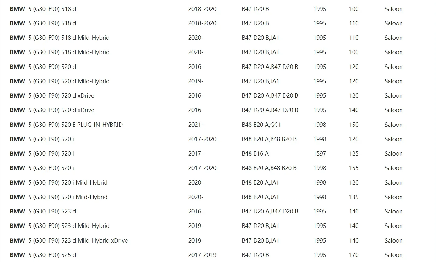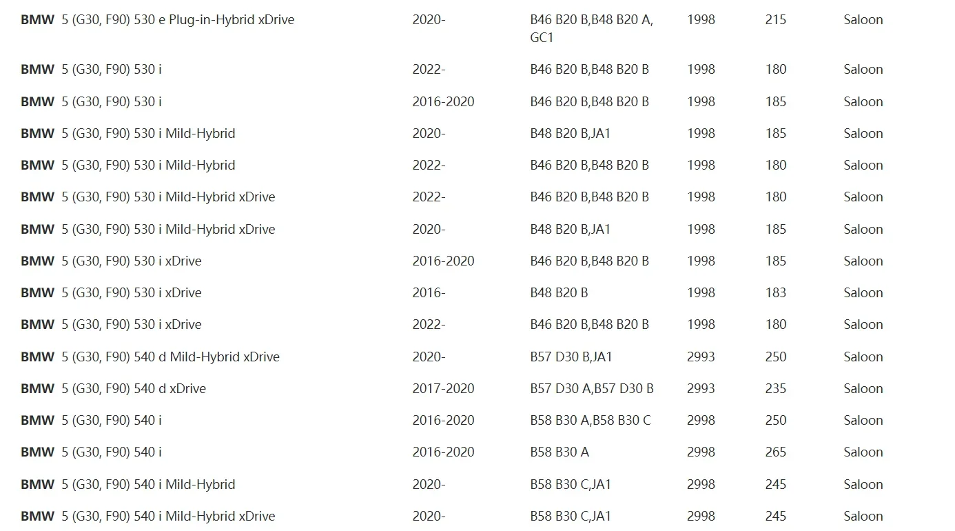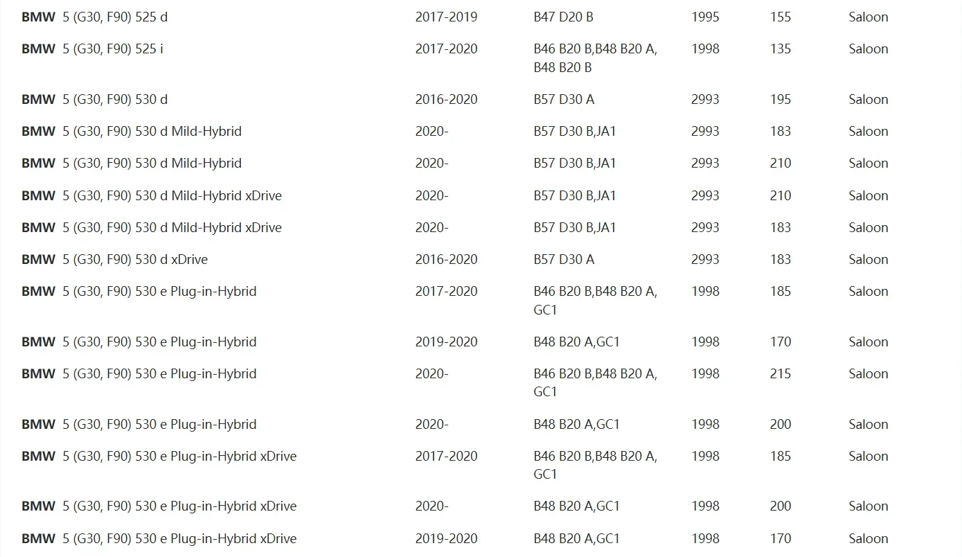 - BMW G30 / G31 5 Series (518d, 520i, 525d, 530i)