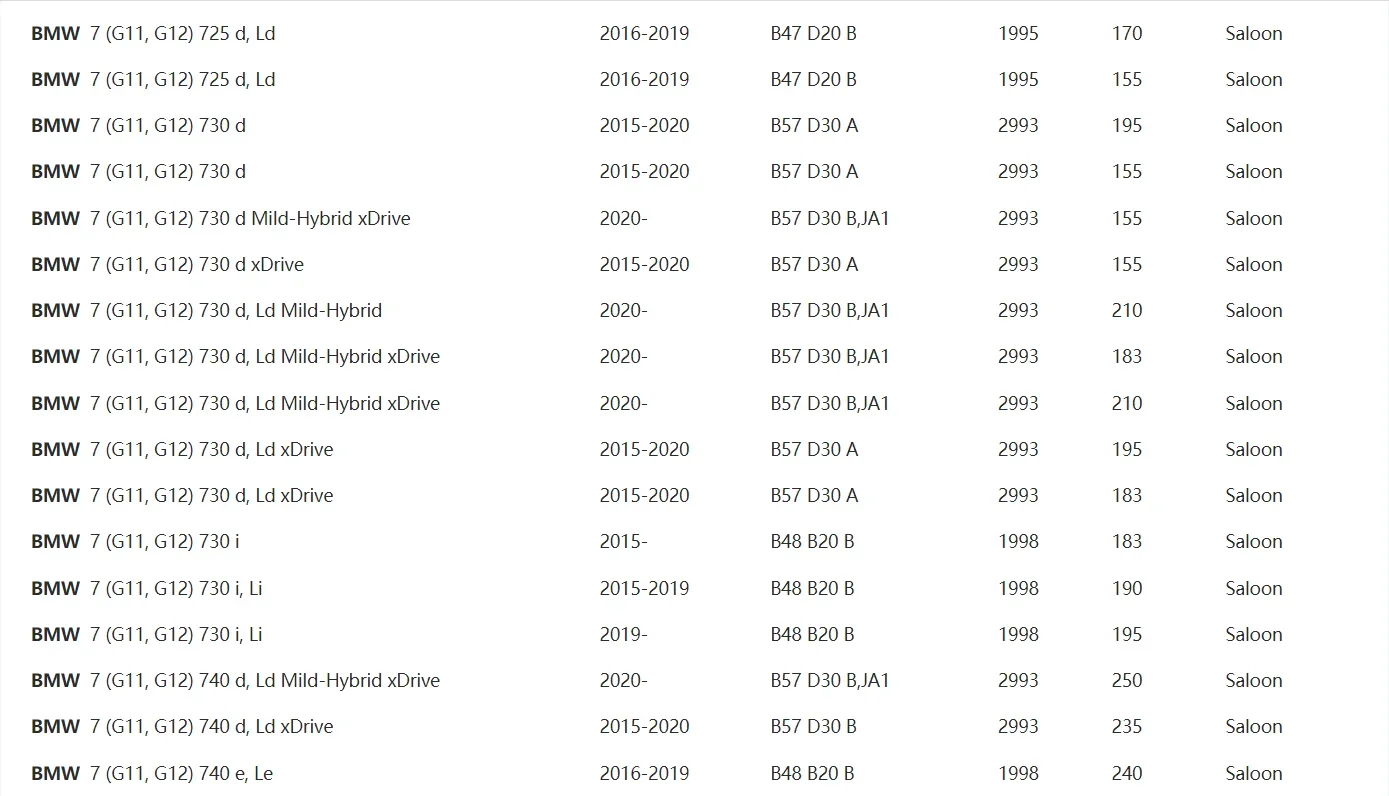 - BMW G11 / G12 7 Series (725, 730)