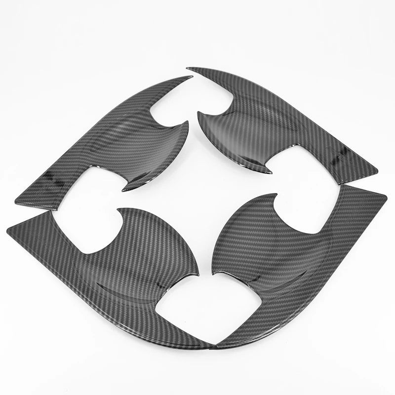 Enhance the look of your Toyota RAV4 with these stylish black carbon fiber pattern door handle bowl covers. Designed to protect your car handles from scratches while adding a sporty and premium touch.