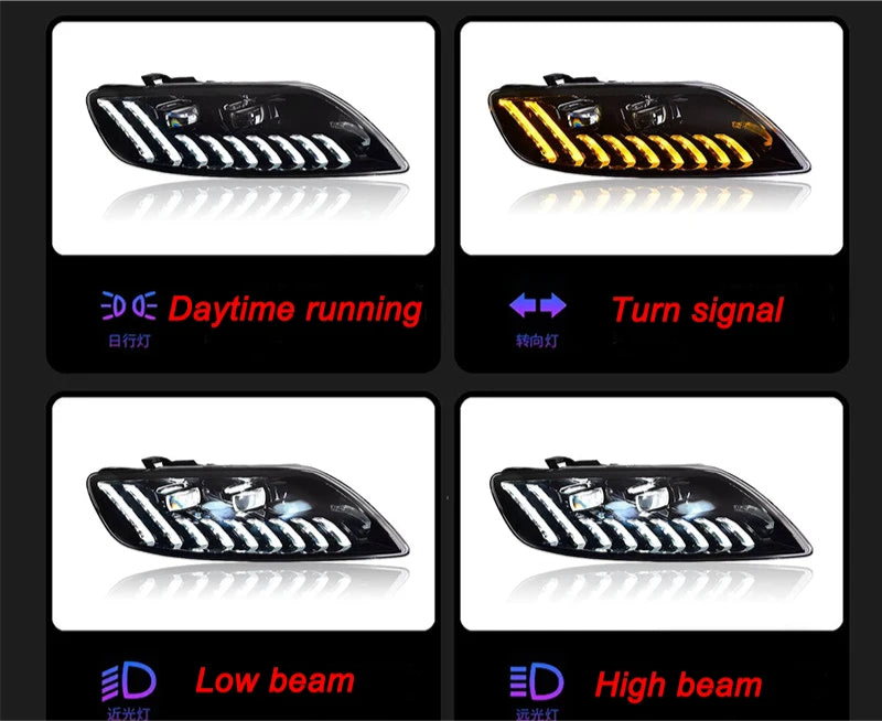 Upgrade your Audi Q7 with these full LED headlight assemblies featuring projector lenses. Designed to improve nighttime visibility, provide a modern look, and enhance driving safety. Perfect replacement or upgrade for stock headlights.