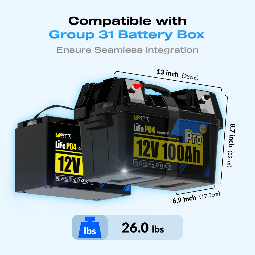 Wattcycle 12V 100Ah LiFePO4 Battery – High-Performance Rechargeable Power